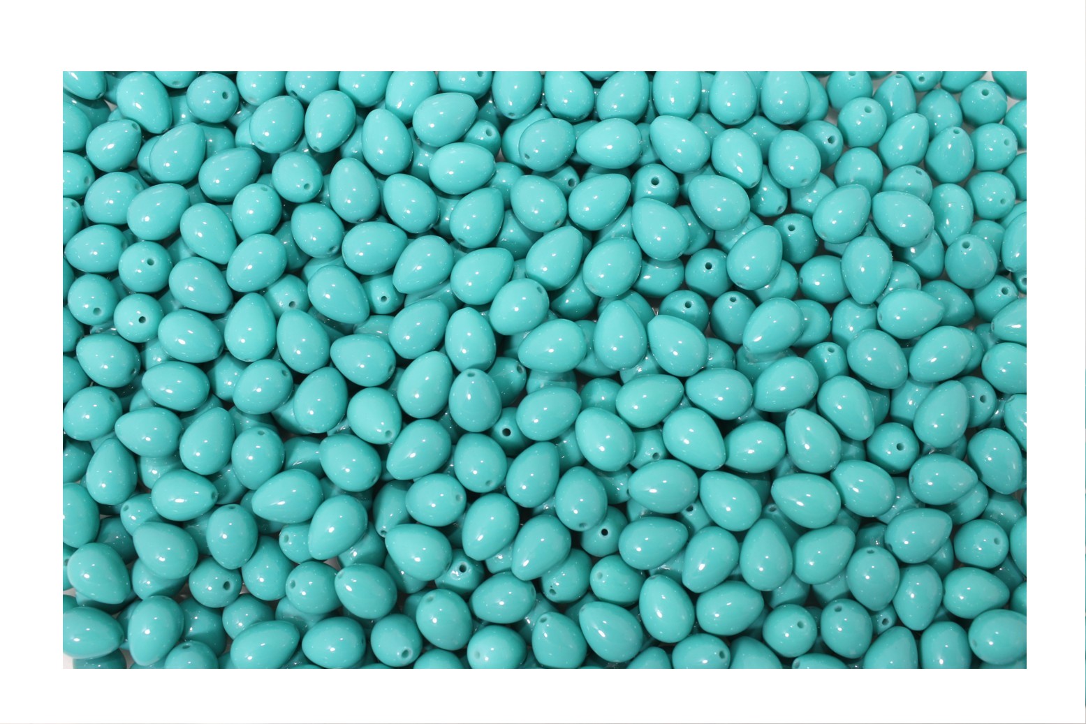 Tear Drop – 7 x 9mm – Teale. Glass bead. Hole runs from top to bottom.