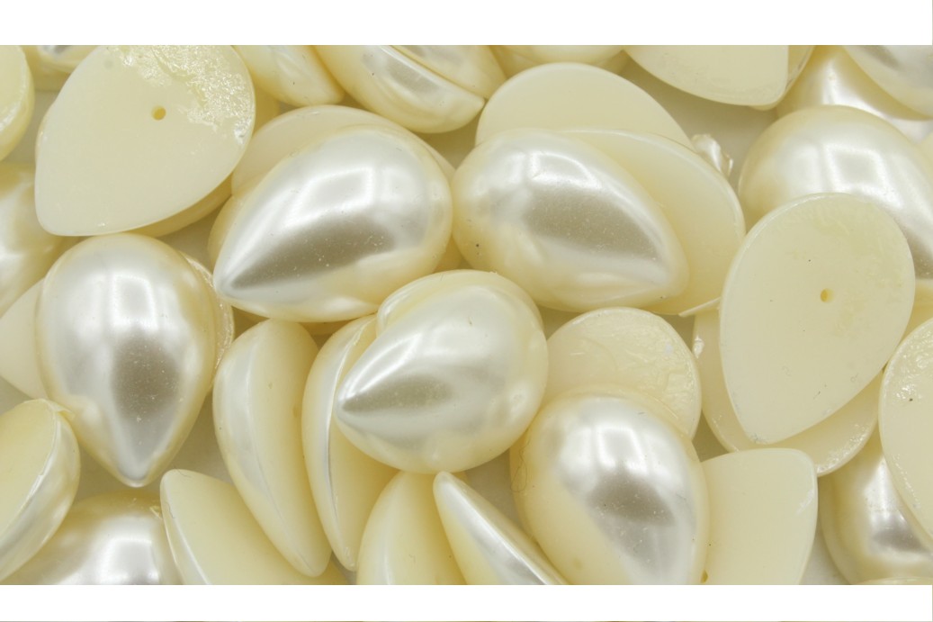 Tear Drop Flat Back Pearl – 25 x 18mm. Plastic.