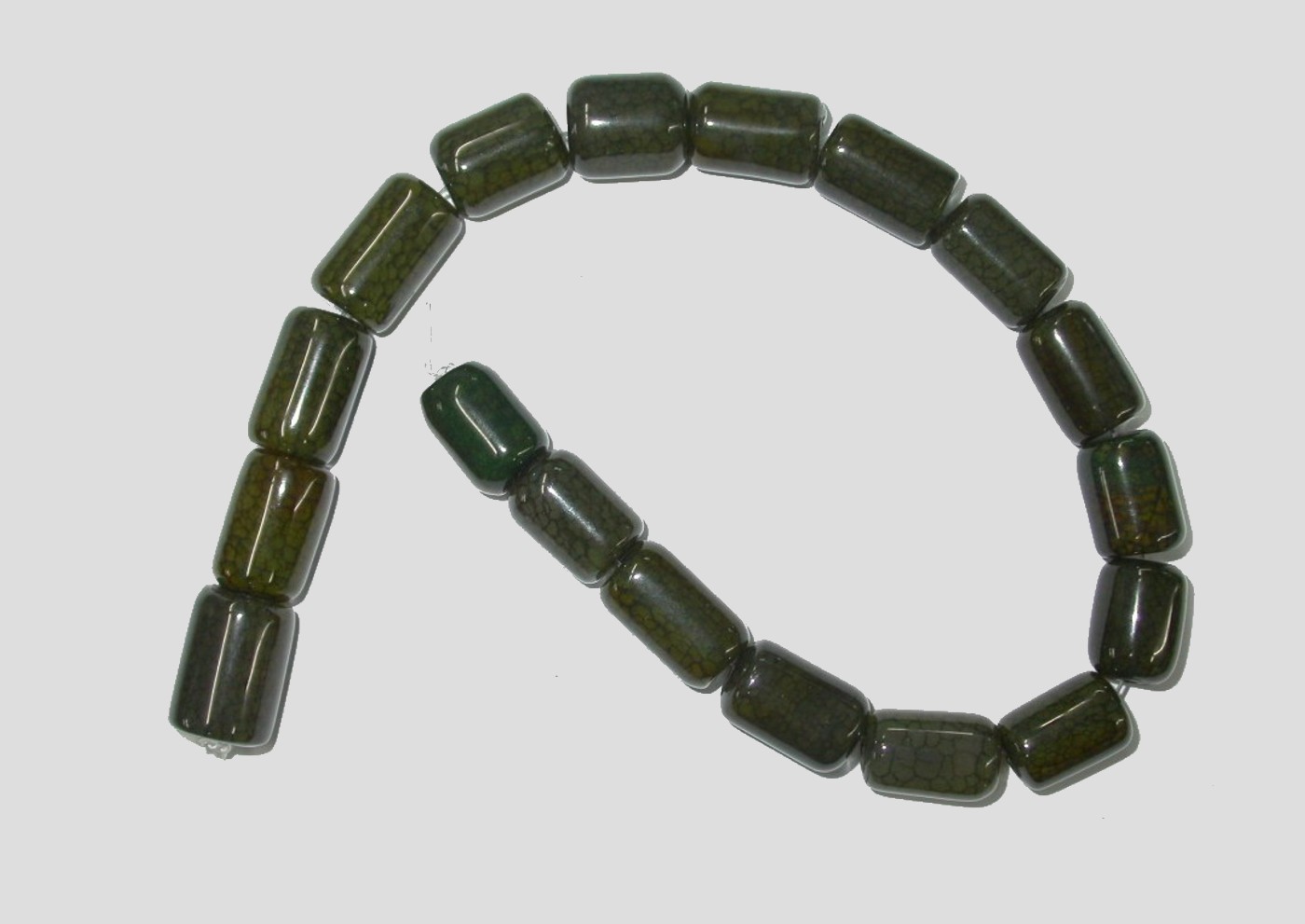 Tibet Agate – Barrel – 36cm Strand. 20 x 14mm Bead size. Cracked pattern. Please contact us to purchase individual pieces.