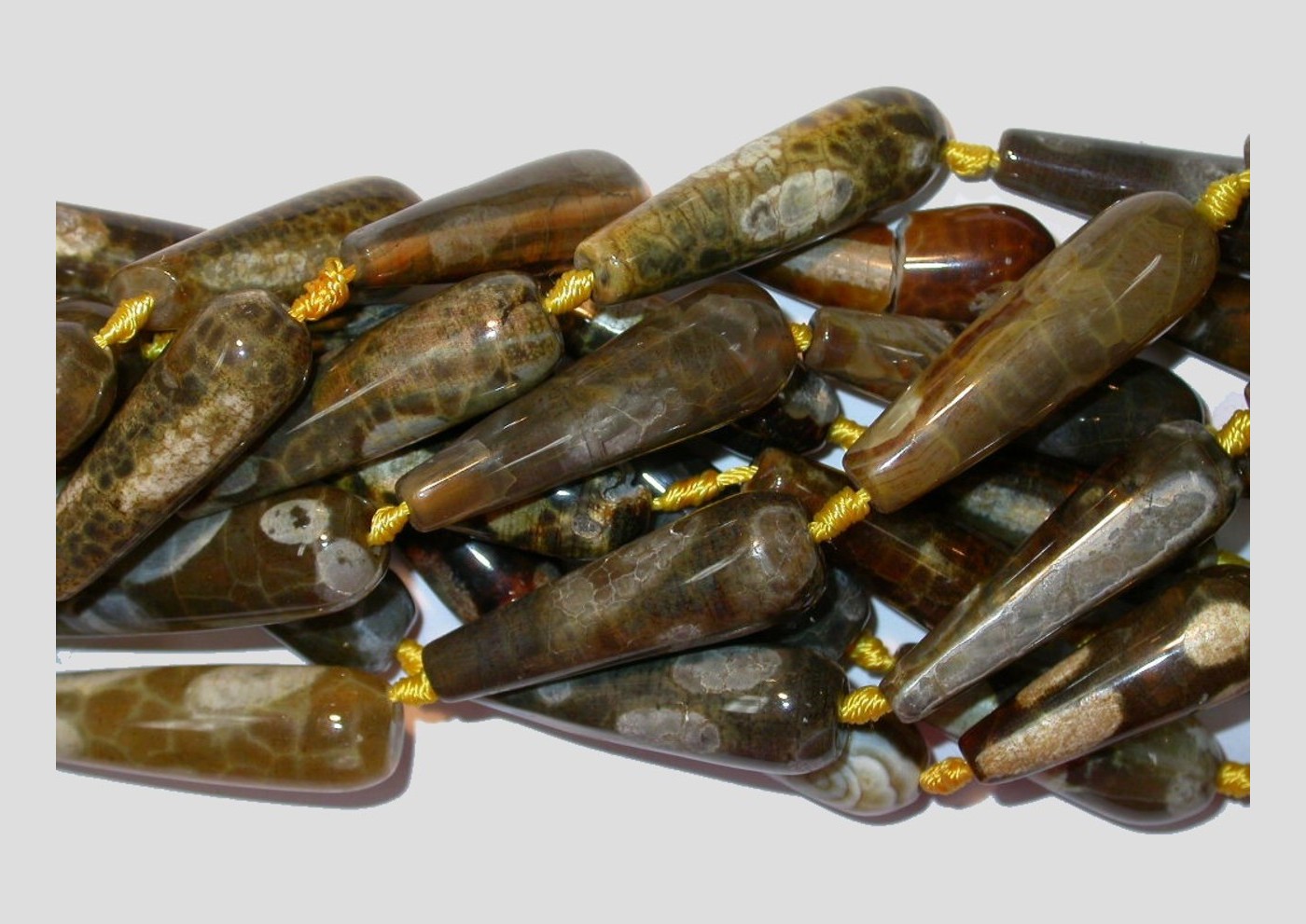 Tiger Agate – 28mm Drop – 36cm Strand. 28 x 10mm bead size. Please contact us to purchase individual pieces.
