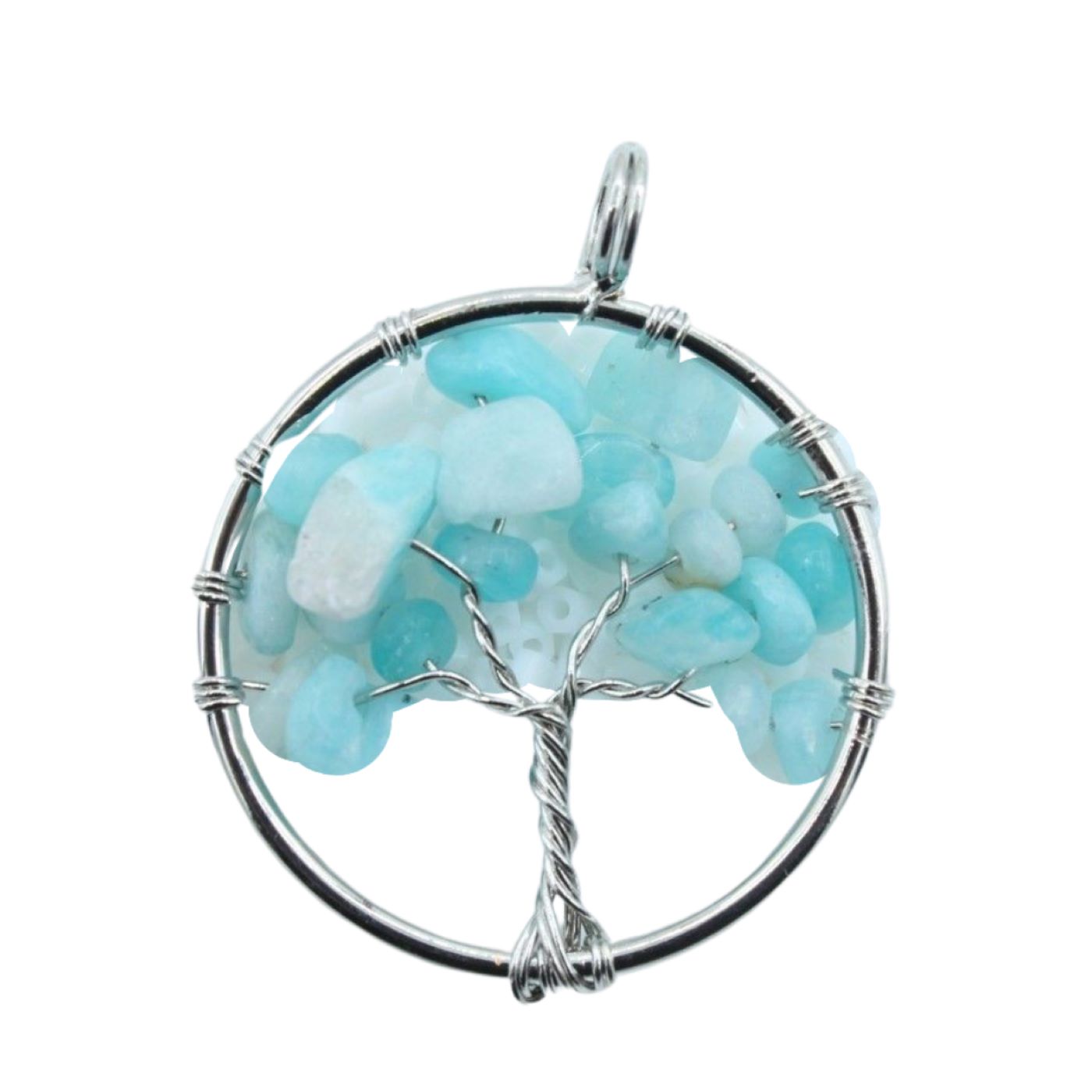 Tree Of Life – Amazonite – 28mm. Ant Silver. 34mm including loop.