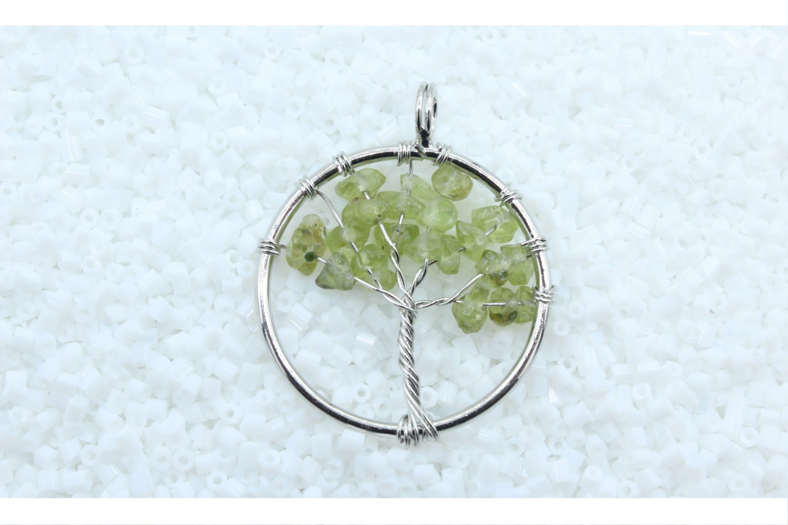 Tree Of Life – Peridot – 28mm. Ant Silver. 34mm including loop.