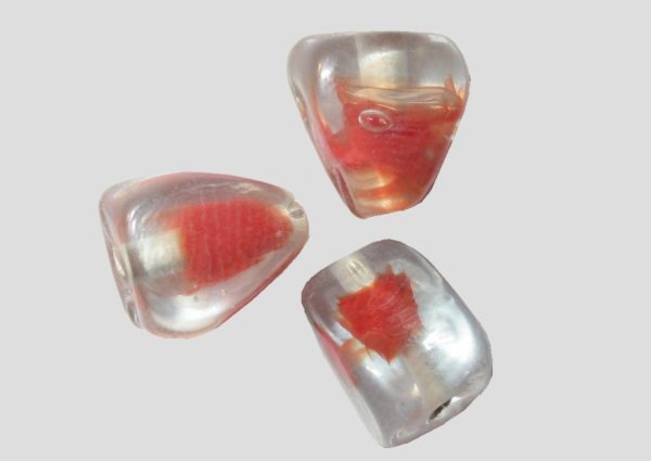 Triangle Silver Foil Glass Bead – 10mm – Red