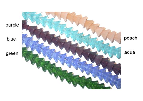 Tulip – 12 x 10mm – Assorted Colours – 30cm Strand. Center drilled. Glass Bead.