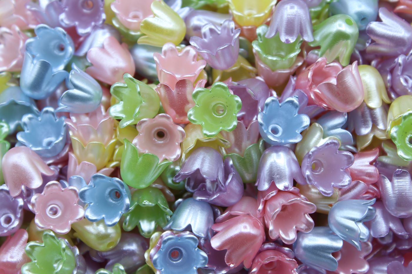 Tulip Cup – 10mm – Pearlised Mix. Plastic Bead. Tulip shape. 10mm size.