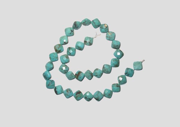 Turquoise – Faceted Square – 40cm Strand. 10mm Bead size. Diagonally drilled. Please contact us to purchase individual pieces.