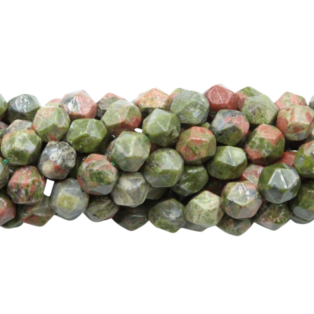 Unakite – 8mm Faceted – Tri Cut – 38cm Strand.