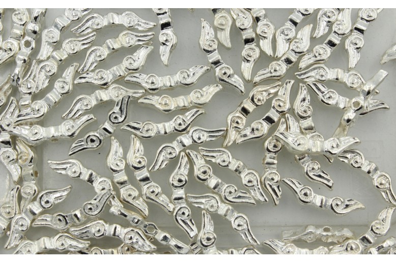 Wings – A – 16 x 4mm – Silver. Metal Bead. Plated.