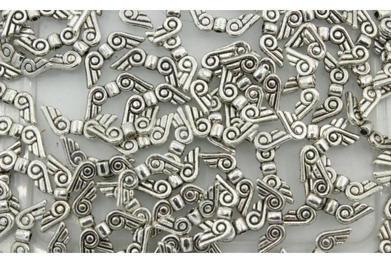 Wings – B – 20 x 7mm – Antique Silver. Metal Bead. Plated.