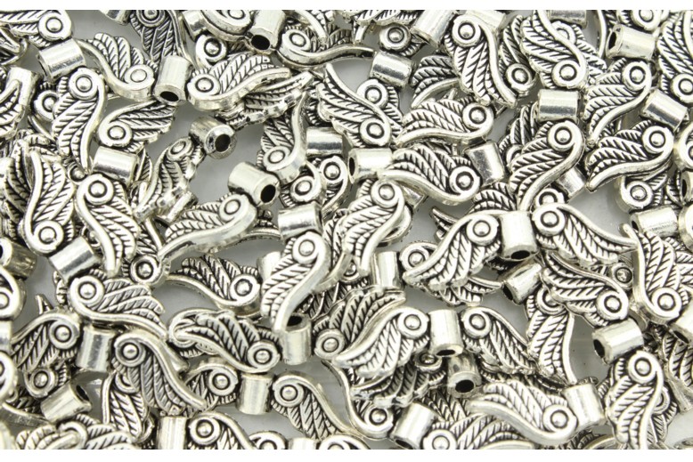 Wings – E – 25 x 10mm – Antique Silver. Metal Bead. Plated.