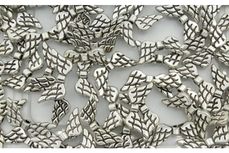 Wings – F – 20 x 9mm – Antique Silver. Metal Bead. Plated.
