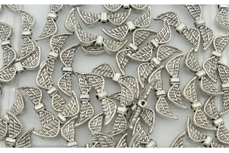 Wings – H – 20 x 6mm – Antique Silver. Metal Bead. Plated.