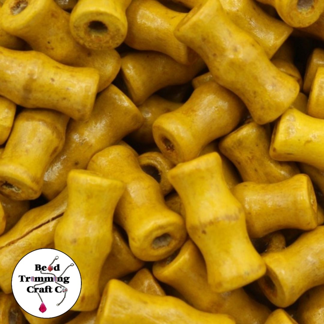 Wood Bead – Bone Shape – 16mm – Yellow.