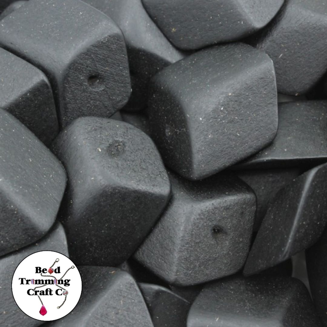 Wood Bead – Flat Cube – 30mm – Black.