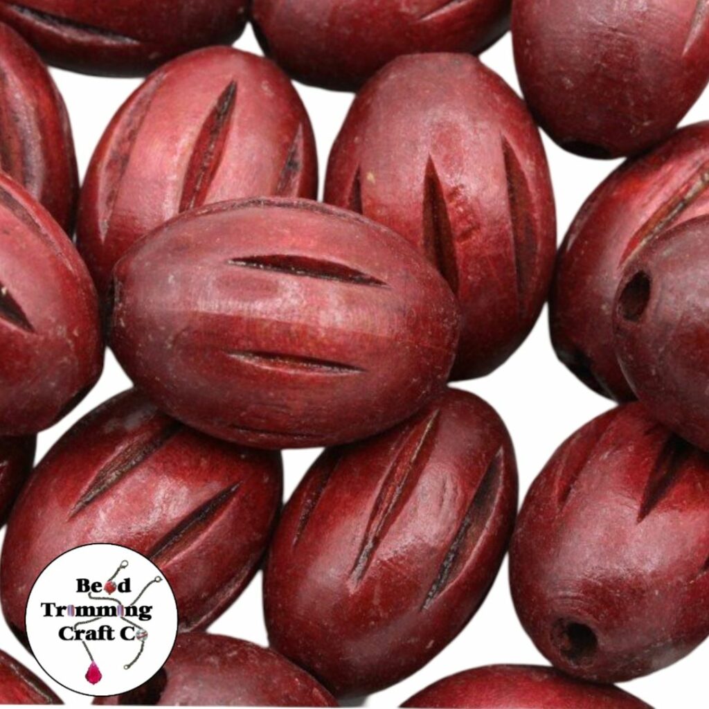 Wood Bead – Oval – Grated – 30mm – Burgundy.
