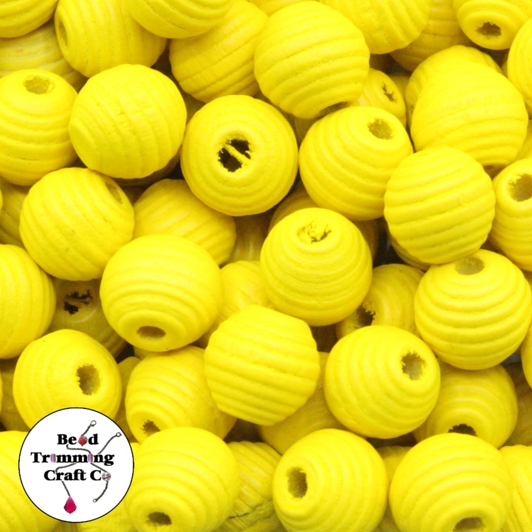 Wood Bead – Round / Beehive – 12mm – Yellow.