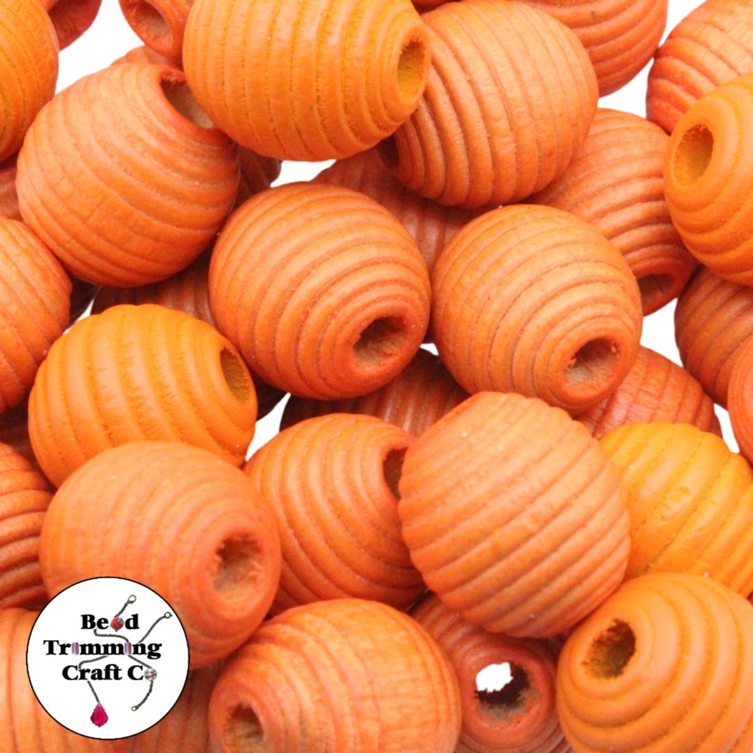 Wood Bead – Round / Beehive – 20mm – Orange.