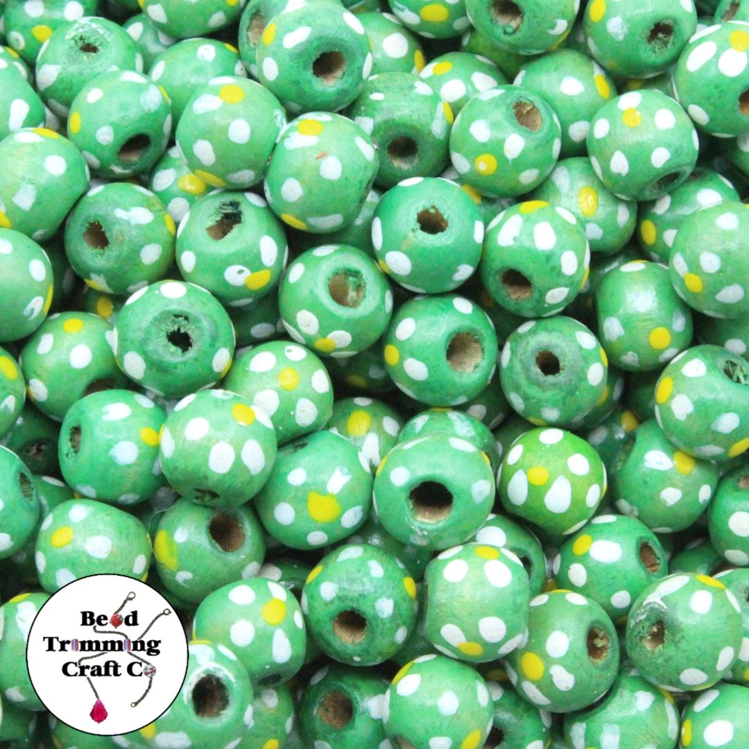 Wood Bead – Round / Flower – 10mm – Green.