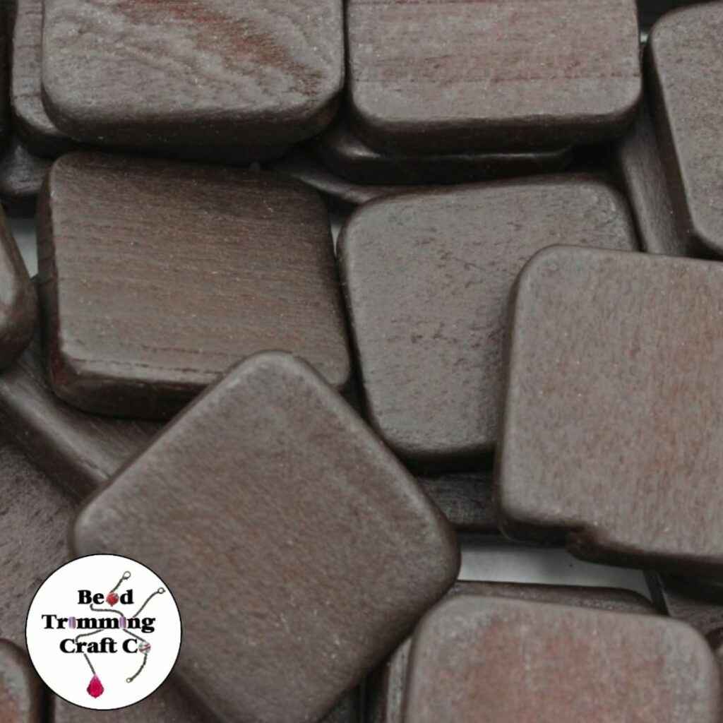 Wood Bead – Square Shape – Diagonally Drilled – 27mm – Brown.