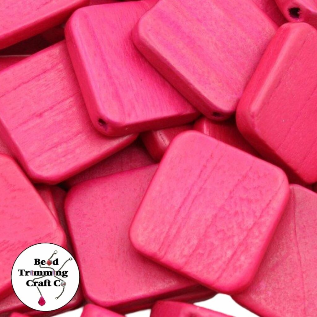 Wood Bead – Square Shape – Diagonally Drilled – 27mm – Pink.