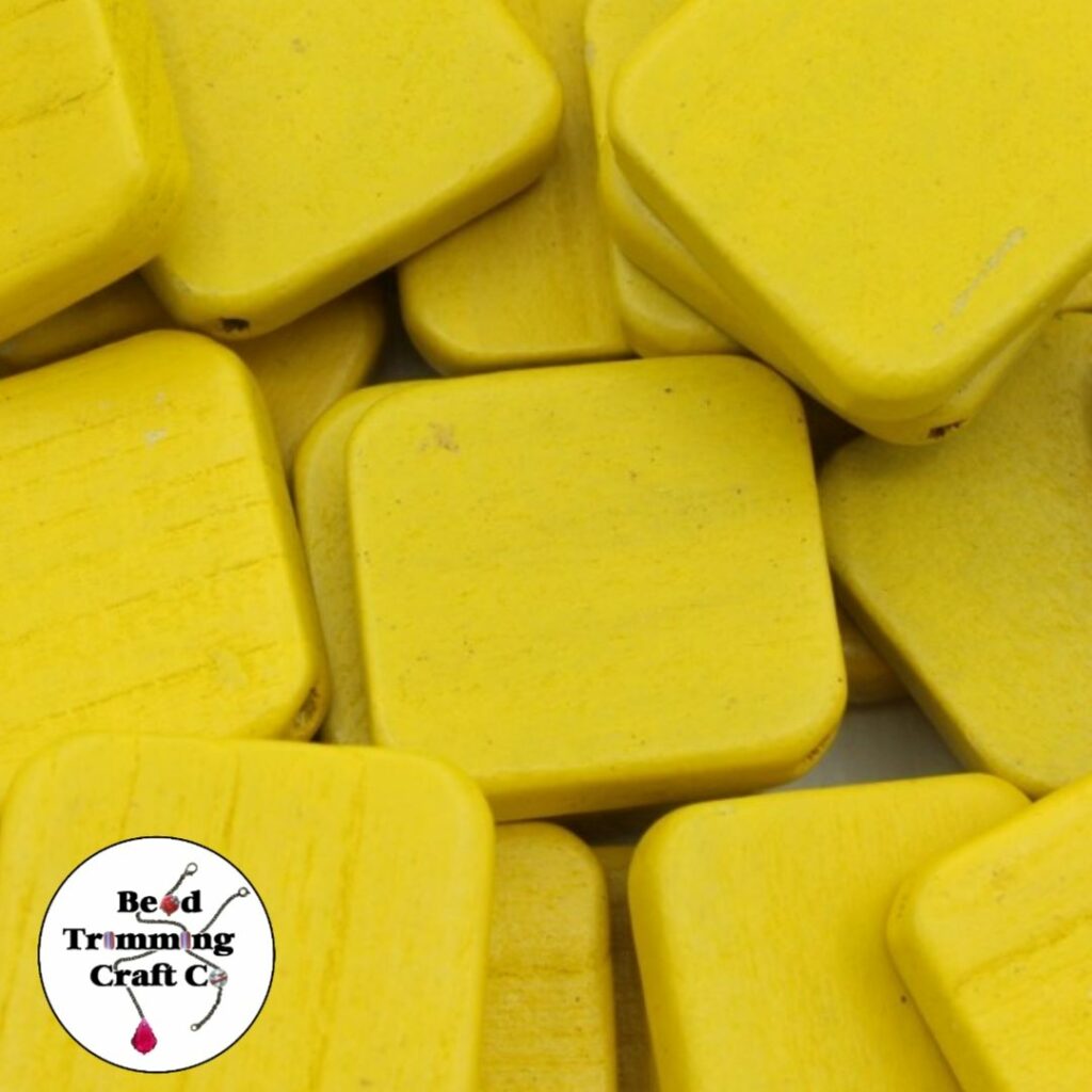 Wood Bead – Square Shape – Diagonally Drilled – 27mm – Yellow