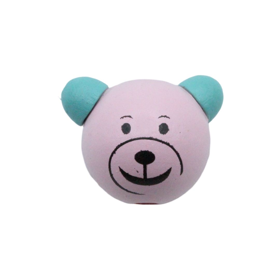 Wood Bead – Teddy Bear Head – 23mm – Pink.