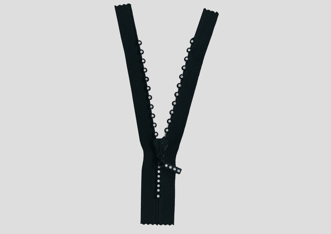 Zipper – 15cm – Classic – Closed End – Standard Tag – Black. Crystal Colour. Swarovski Crystal. Made in Austria.