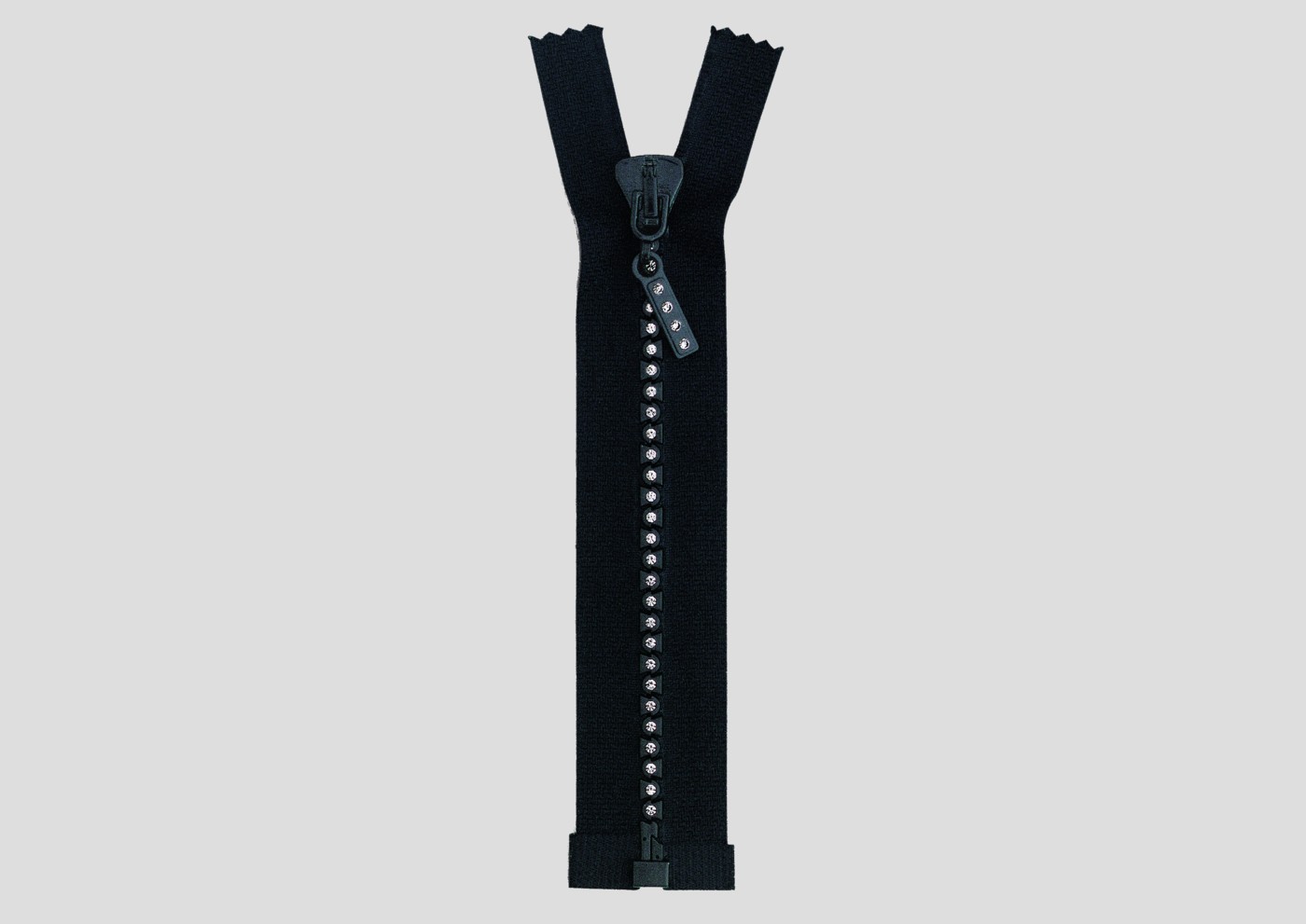 Zipper – 35cm – Classic – Open Ended – Standard Tag – Black. Crystal Colour. Swarovski Crystal. Made in Austria.